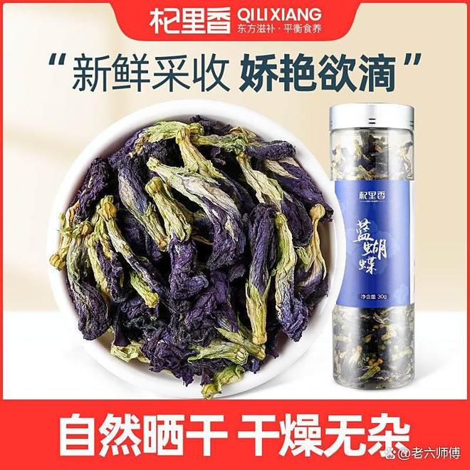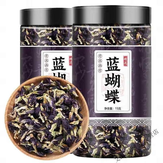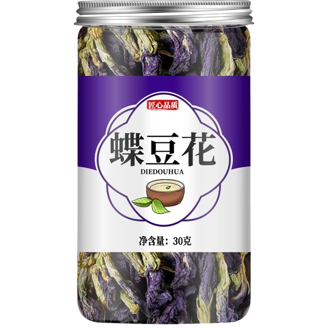 北京同仁堂精选优质蝶豆花干花,天然染色,可食用商用。蓝蝴蝶蝶豆花茶调色,蝶豆花粉烘焙必备。罐装蝶豆花30g,方便实用,为您的美食增添独特色彩与风味。同仁堂品质,值得信赖。